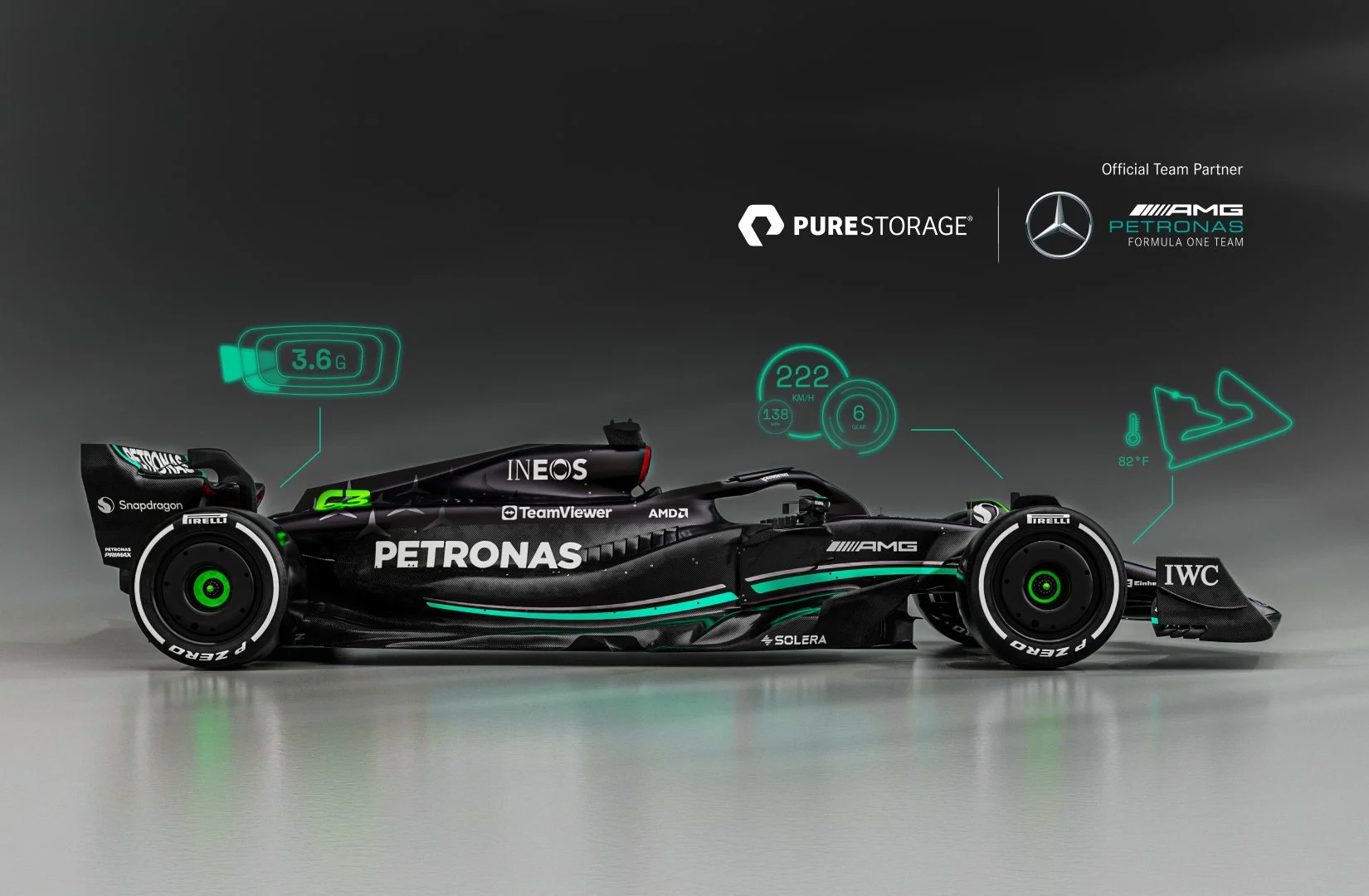 The Pure Storage + AMG Petronas Formula One Team partnership is a high-profile technology and branding collaboration between Pure Storage and the Mercedes Petronas F1 team.
