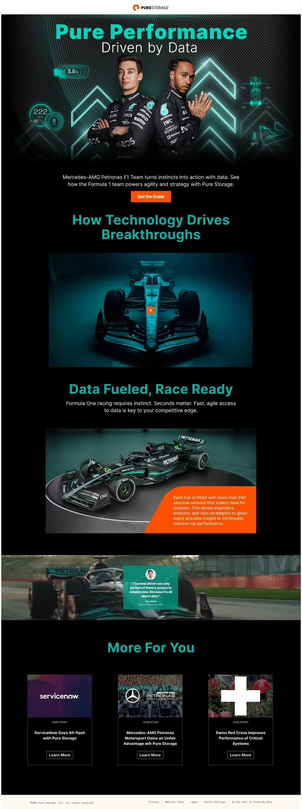 Pure Storage’s partnership with AMG Petronas Formula One Team is a great example of how a technical capability becomes a powerful brand story. On the surface, it’s about providing high-performance data storage for real-time race operations and broadcasting. But from a marketing perspective, it positions Pure Storage alongside speed, precision, and innovation.
